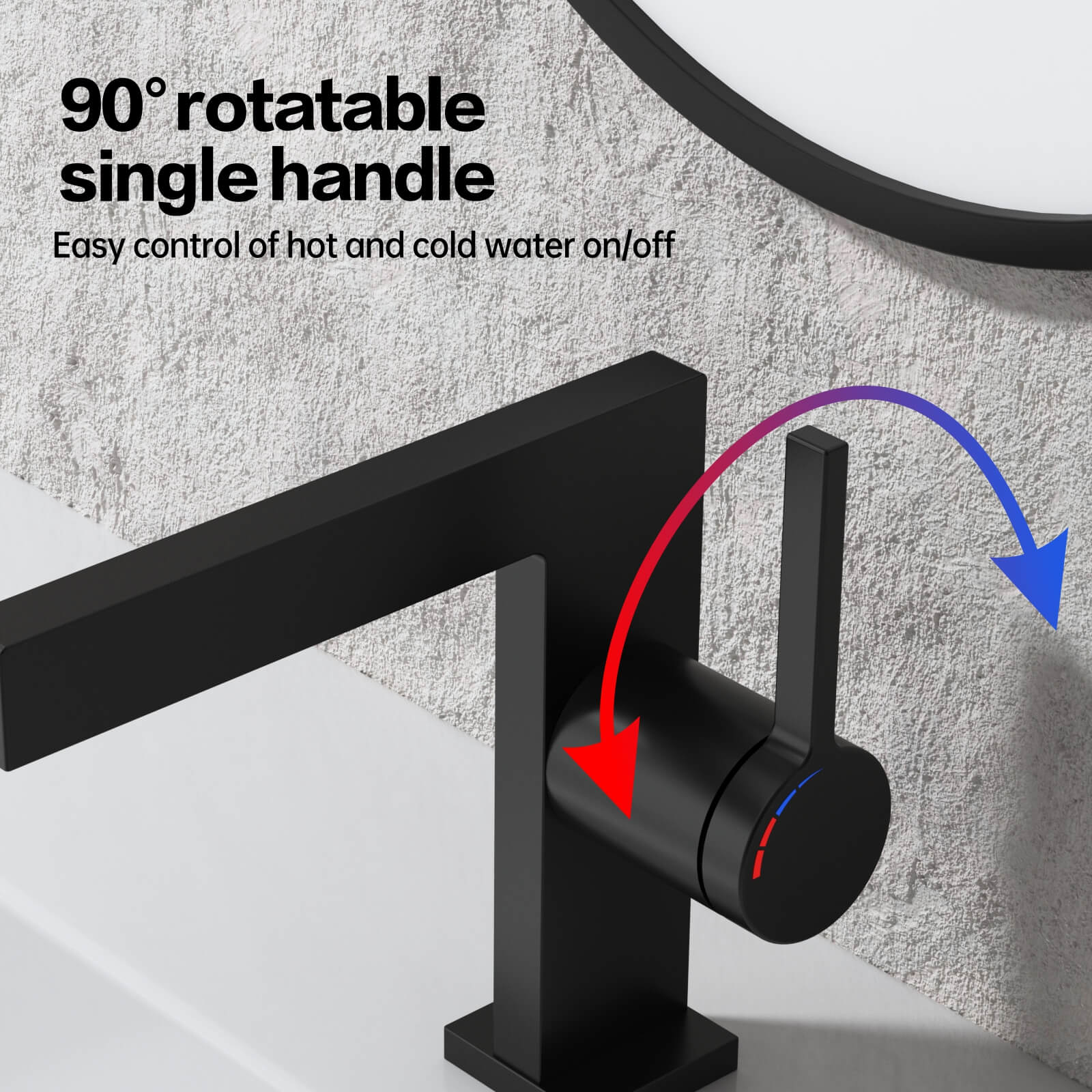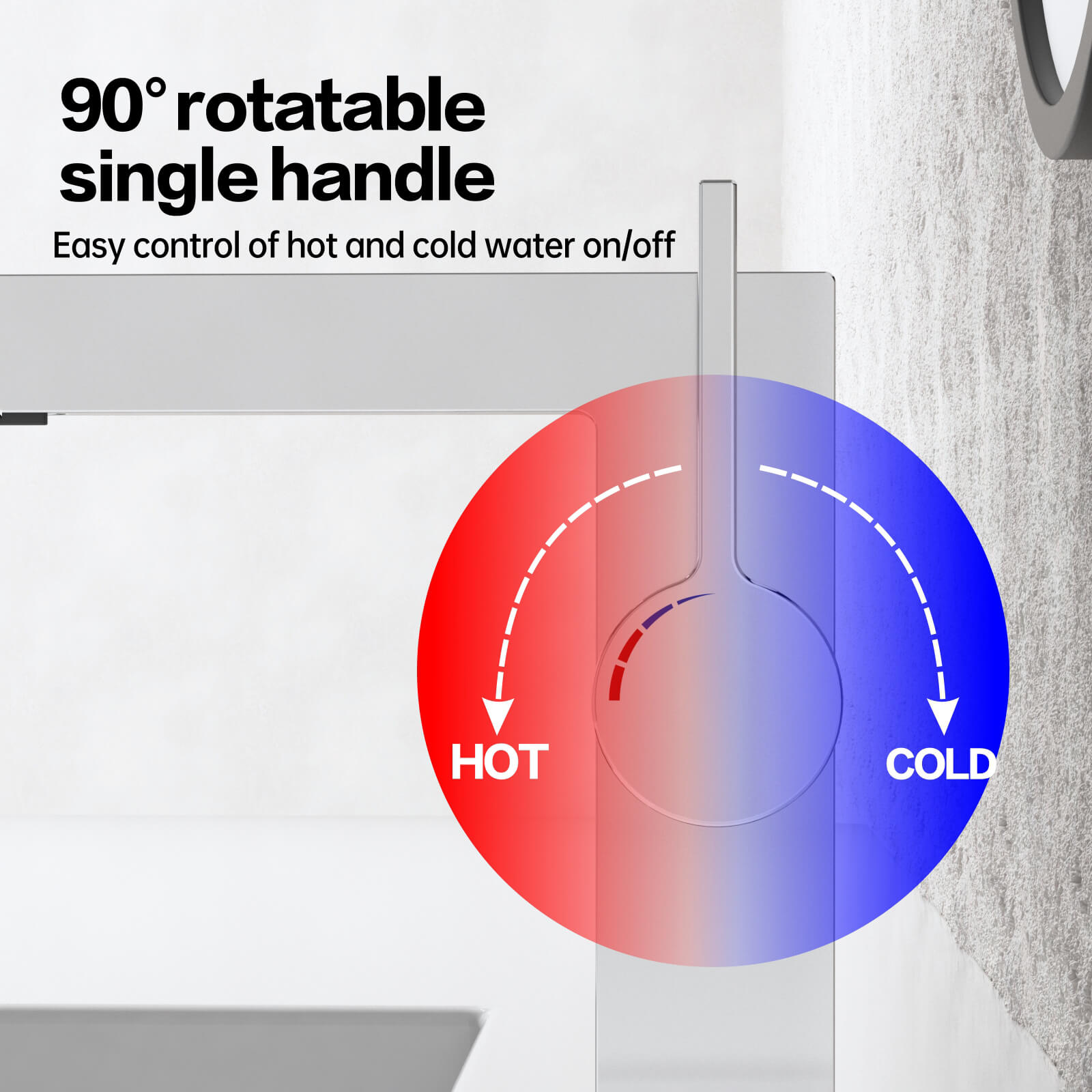 - Single-Handle Control: 90° rotatable handle for easy hot and cold water control.
