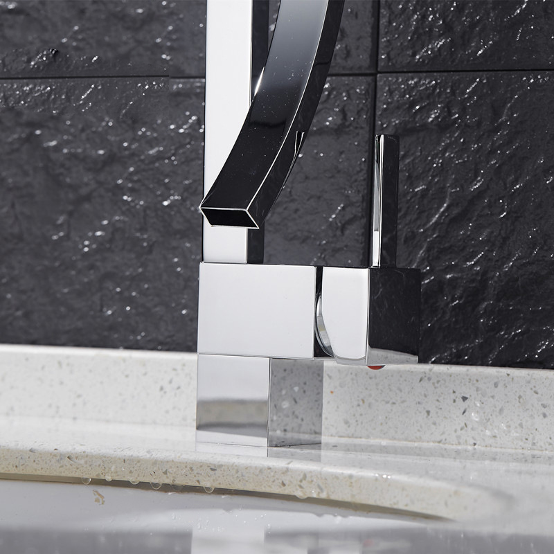 Modern Minimalist Square Single Handle Hot and Cold Basin Faucet
