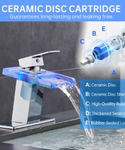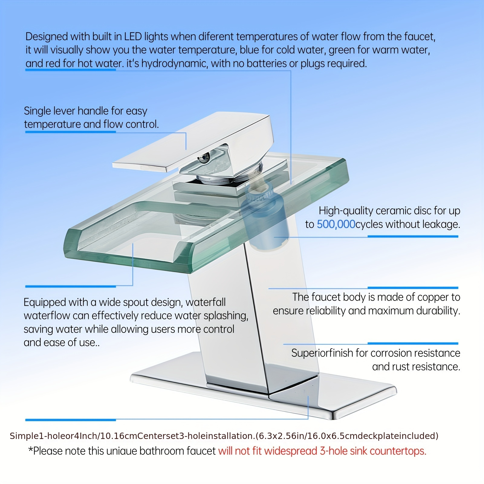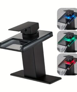 Matte Black Waterfall LED Bathroom Sink Faucet with Deck Plate, Single Handle Vanity Faucet for 3-Hole Sinks